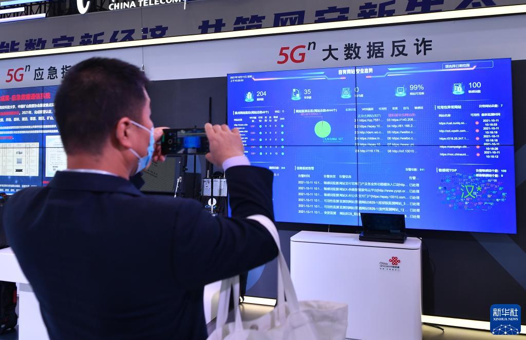 10月11日,观众在2021年国家网络安全宣传周网络安全博览会参观。