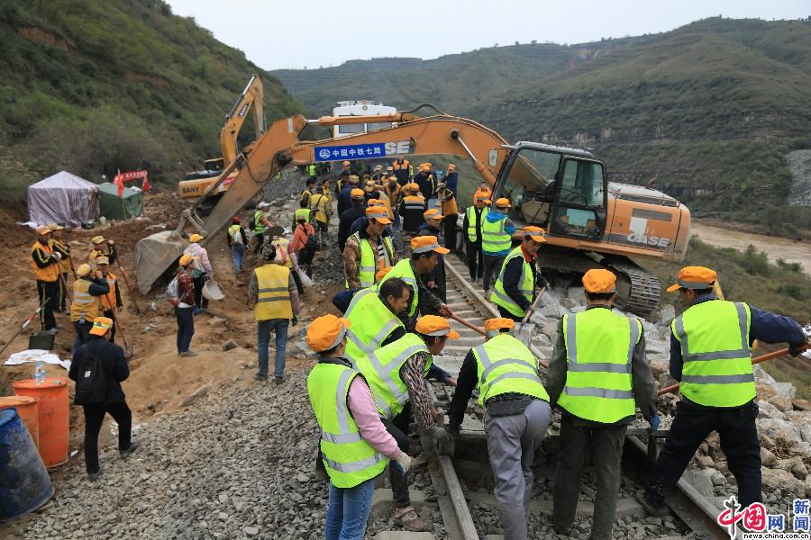 中国铁路西安局集团公司延安工务段抢险现场。中国网发 李晓龙/摄