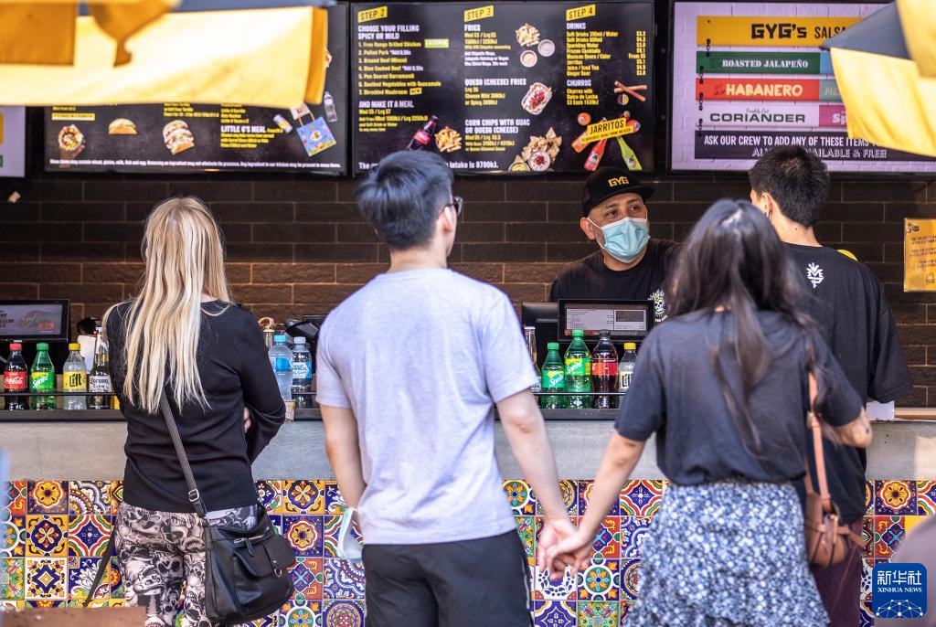 10月18日,人们在澳大利亚悉尼一家恢复营业的快餐店点餐。澳大利亚最大城市、新南威尔士州首府悉尼18日解除更多防疫限制性措施,数以千计儿童在家学习近4个月后,于当天重返校园。新华社记者 白雪飞 摄
