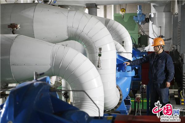 2021年10月11日,宁夏电投西夏热电有限公司工作人员对供热设备进行监测。新华社记者 王鹏 摄
