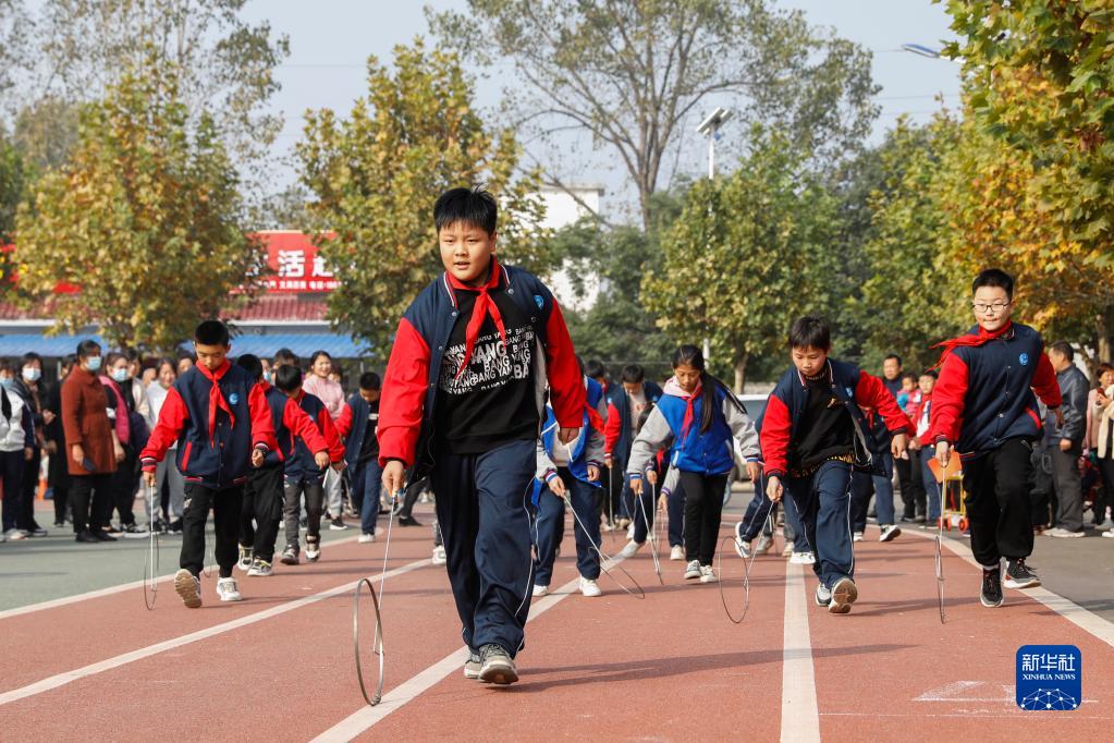 当日,一场以传统体育、游艺项目为主的趣味运动会在河南省宝丰县杨庄镇马山根村举行,当地居民参加了踢毽子、推铁环、跳皮筋、打陀螺、老鹰捉小鸡等项目的比赛,在趣味传统项目中放松身心,收获快乐。