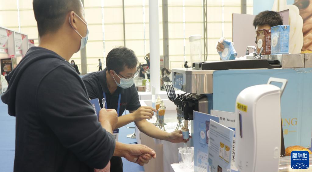 10月27日,在2021广州台博会上,参展商为观众制作冰激凌。新华社记者 洪泽华 摄