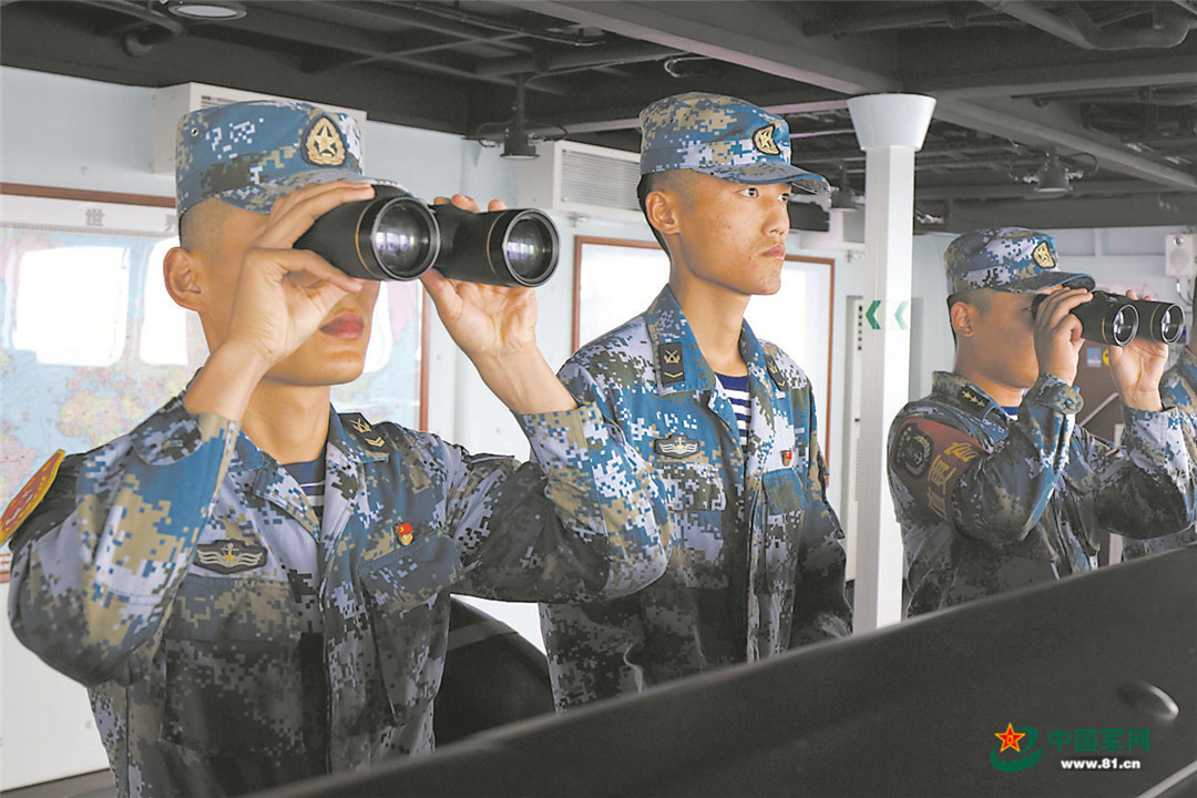 参演官兵加强海面观察。