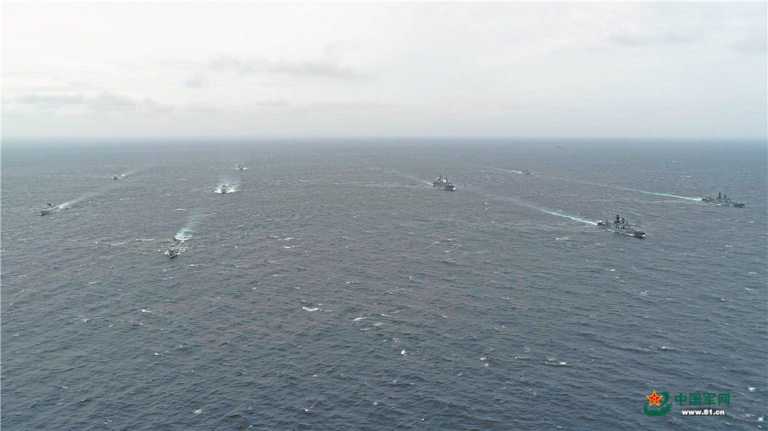 中俄舰艇编队在西太平洋联合巡航。