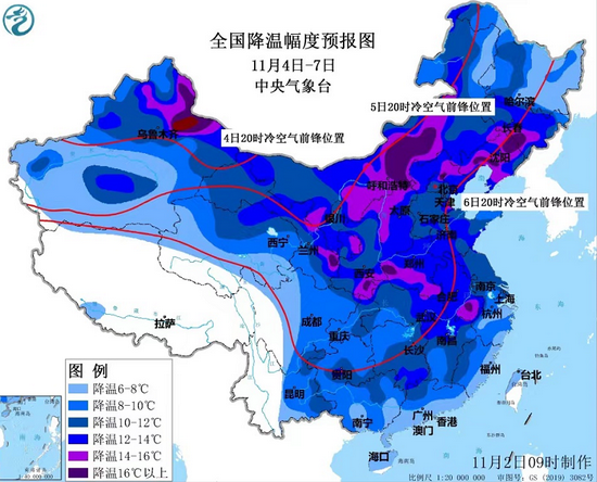 寒潮影响进程预报:4日至5日,主要影响新疆和西北地区中西部;6日,东移南下影响西北地区东部、华北、东北、华中和西南地区北部;7日,影响华东、华南、西南地区南部等地。7日早晨,最低气温0℃线位于河北中部、山西南部至陕西南部一带,北京平原地区最低气温可降至-4℃左右。