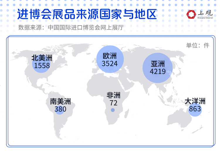 从区域上来看,来自亚洲的展品最多,为4219件,约占总数的40%;其次是欧洲与北美洲,分别为3524与1558件展品。