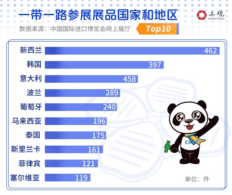 在“一带一路”沿线国家中,有50个国家、600多家企业参加了本次进博会,其中新西兰带来的展品最多,为462件。