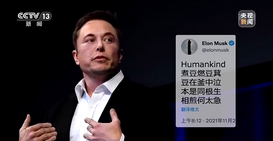 “煮豆燃豆萁,豆在釜中泣。本是同根生,相煎何太急。”11月2日,全球首富马斯克,在社交媒体上发布了中文版的七步诗,并在开头用英文写下“人类”一词。