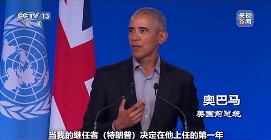 11月8日,拜登的“最佳拍档”奥巴马出现在气候大会上。