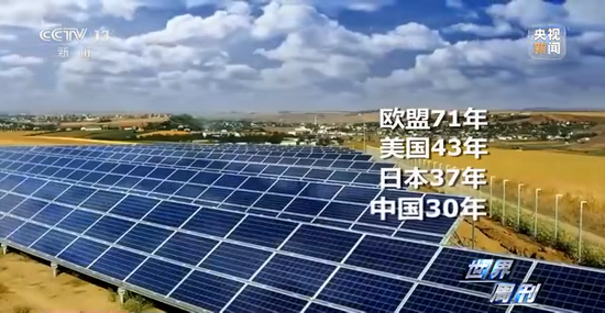 从碳达峰到碳中和,欧盟将用71年,美国将用43年,日本将用37年,而中国给自己规定的时间只有30年,作为世界上最大的发展中国家,中国承诺用全球历史上最短的时间实现从碳达峰到碳中和。