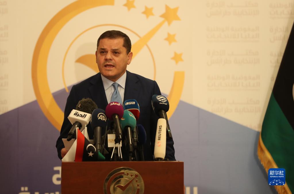 11月21日,利比亚民族团结政府(过渡政府)总理德贝巴在首都的黎波里举行的新闻发布会上讲话。