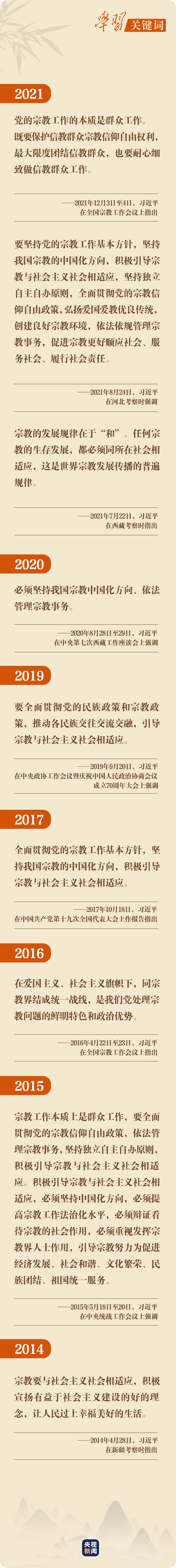 “要培养一支精通马克思主义宗教观、熟悉宗教工作、善于做信教群众工作的党政干部队伍,让他们深入学习马克思主义宗教观、党的宗教工作理论和方针政策、宗教知识,不断提升导的能力。”在此次全国宗教工作会议上,总书记全面总结宗教工作的成绩经验,深入分析宗教工作面临的形势任务,系统阐述了新时代宗教工作的新思想新理念新战略,就发挥“引导”在宗教工作中的重要作用作了明确部署。