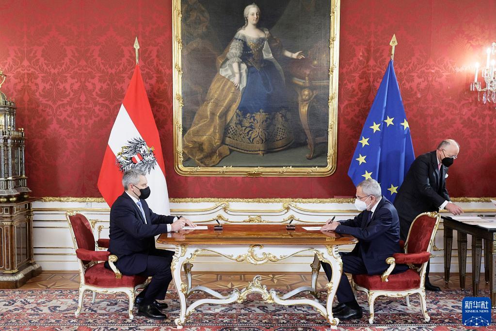 12月6日,在奥地利首都维也纳,卡尔·内哈默(左)与奥地利总统范德贝伦(右二)参加委任仪式。