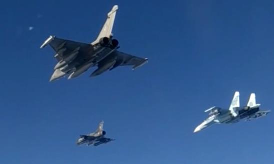 俄罗斯苏-27战斗机(右)伴飞法国空军战斗机
