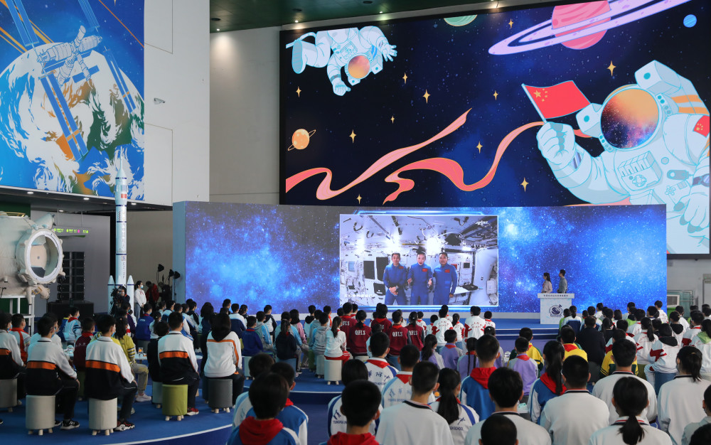 这是12月9日,学生们在北京中国科技馆听课。当日,“天宫课堂”第一课开课,神舟十三号乘组航天员翟志刚、王亚平、叶光富在空间站进行太空授课。新华社记者 金立旺 摄