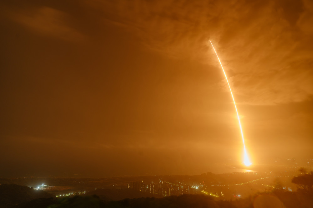 这是4月29日11时23分,中国空间站天和核心舱在我国文昌航天发射场发射升空,准确进入预定轨道,任务取得成功。新华社记者 郭程 摄
