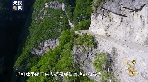 山凿一尺宽一尺,路修一丈长一丈,就这样,历时7年,他们终于在绝壁上凿出一条8000米长的“天路”。