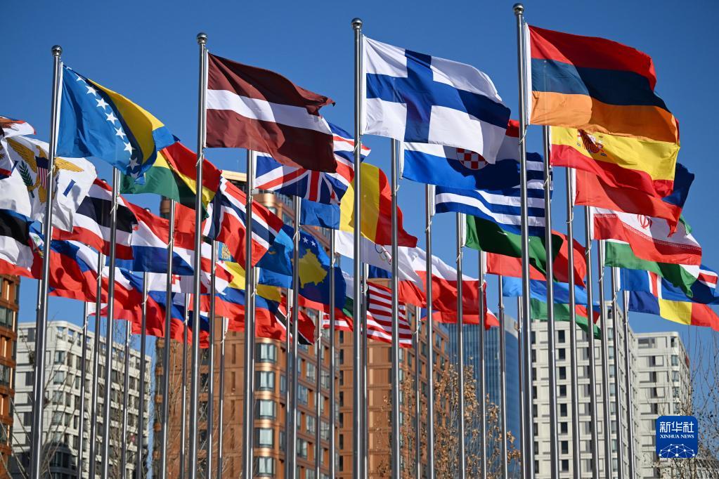 这是1月27日拍摄的北京冬奥村旗帜广场。当日,北京冬奥会北京、张家口、延庆三个赛区的冬奥村正式开村。新华社记者熊琦摄