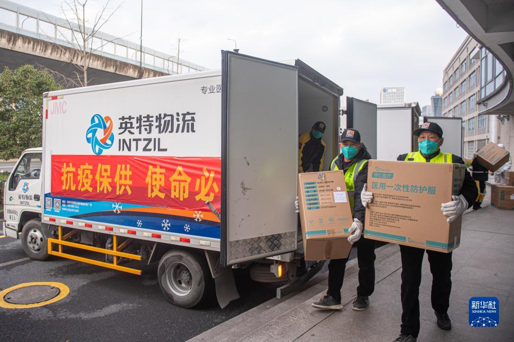 1月30日,志愿者在杭州市滨江区搬运防疫物资。连日来,杭州市滨江区全力做好居民生活物资及防疫物资的供应,保障居民春节期间的生活需求。新华社记者 江汉 摄