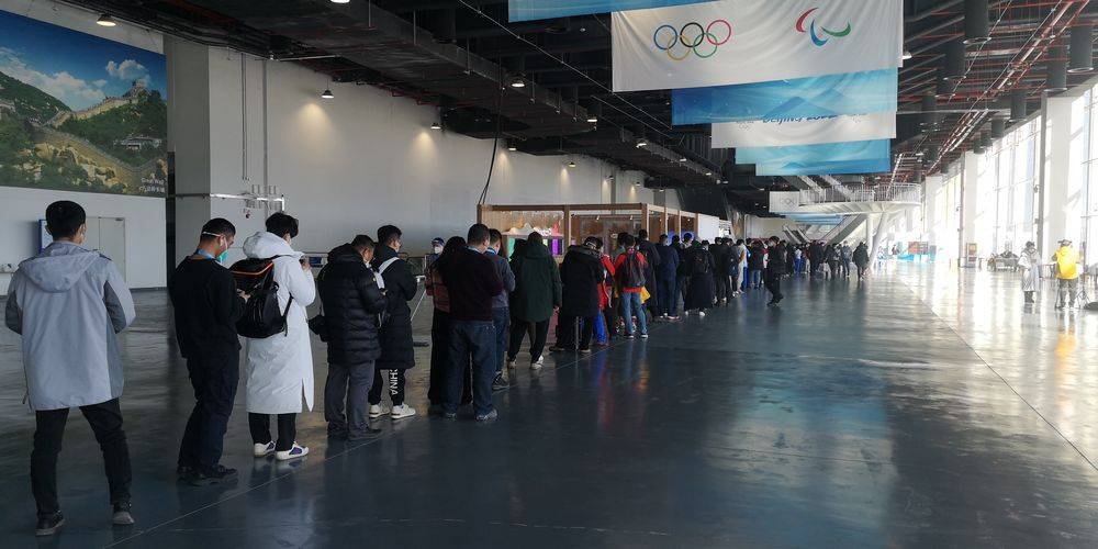 主媒体中心的冬奥特许商店门外也排起了队