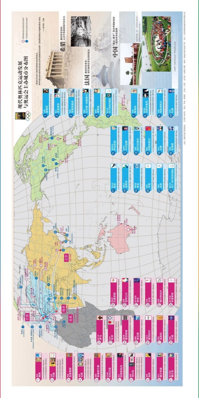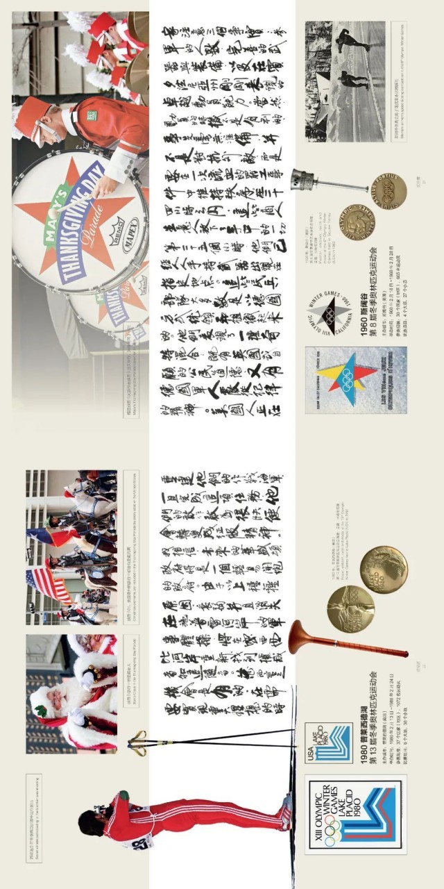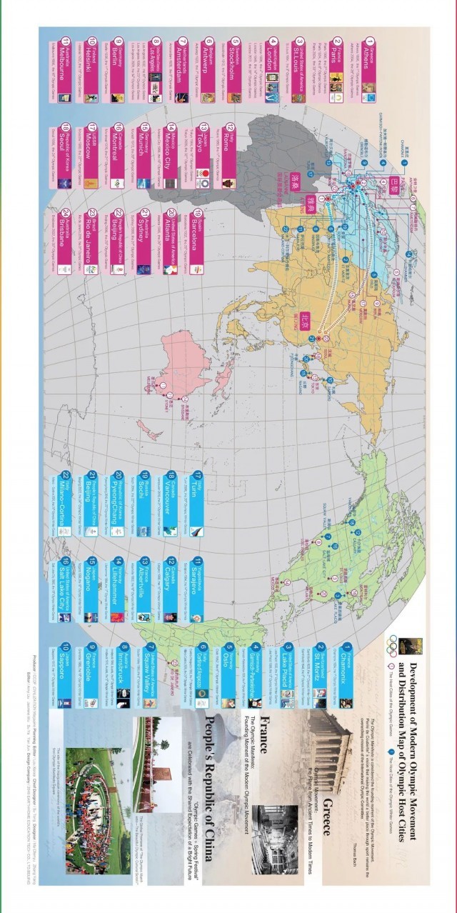 北京冬奥会2月4日开幕,恰逢春节期间(农历大年初四、立春),这是文明交流互鉴、文明对话和文明融合延续的大美盛典。所以长卷Ⅲ的中心部分还展示了全世界第一个“奥林匹克宣言广场”与“双奥之城”中国北京的春节文化,寓意着东西方文明相向而行,在北京相遇相聚并融合发展,将奥林匹克大家庭的所有成员、特别是通过一张“现代奥林匹克运动发展与奥运会主办城市分布图”将奥林匹克城市与世界联系在一起,在“双奥之城”北京携手并肩与世界共享奥林匹克文化之美,以此绘就一幅构建人类命运共同体的美丽画卷。长卷从东西方为代表的人类发展史角度呈现面向未来由“学校体育、社区体育、城市体育、奥运会与奥林匹克文化传承”组成的多层次全方位开放的现代奥林匹克运动完整体系,这也是全世界共同参与构建人类命运共同体最好的探索实践范式。