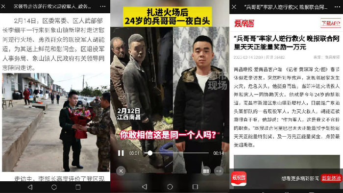 2月12日晚上10点多,南昌市新建区一小区3楼的住户家中突发大火。此时,休假中的东部战区陆军第73集团军某合成旅工兵连战士胡能迢听到呼救,立即带头冲进火场灭火,疏散楼里的群众,并成功救出一名被困火场的妇女。