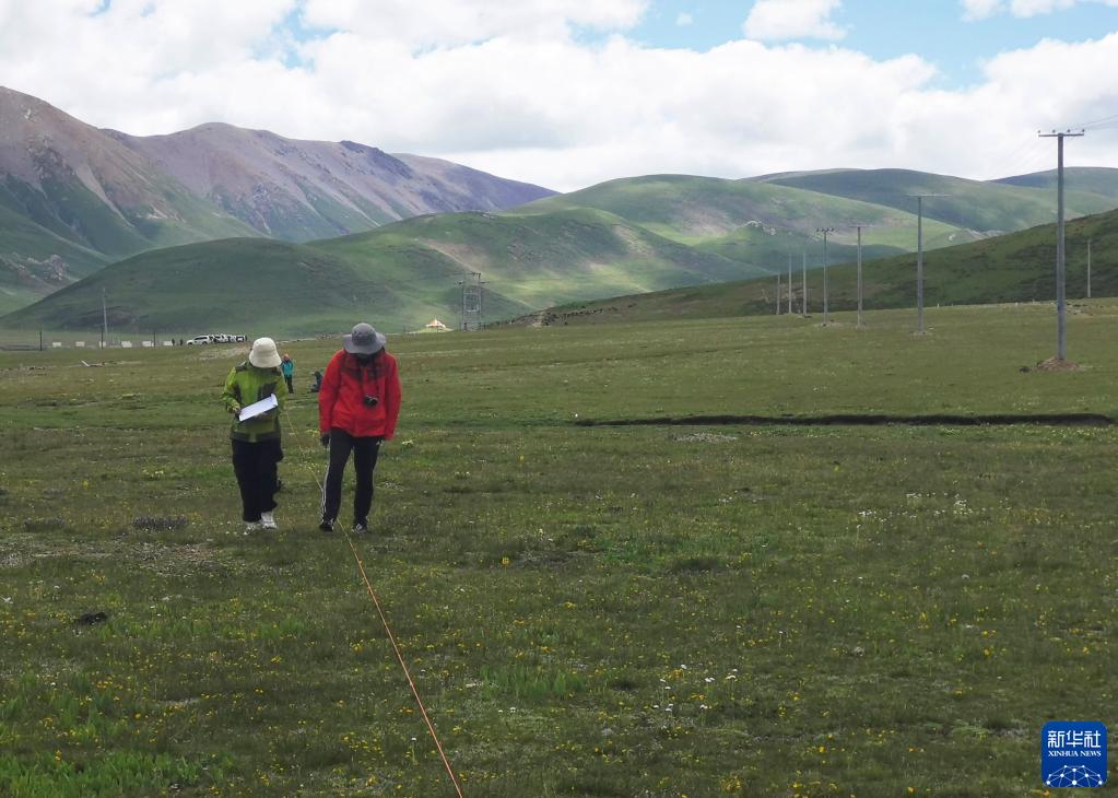 2020年7月25日,第二次青藏高原综合科学考察队“缺氧环境及其健康效应”课题组在青海省玉树藏族自治州巴塘草原考察。新华社发(第二次青藏高原综合科学考察队供图)