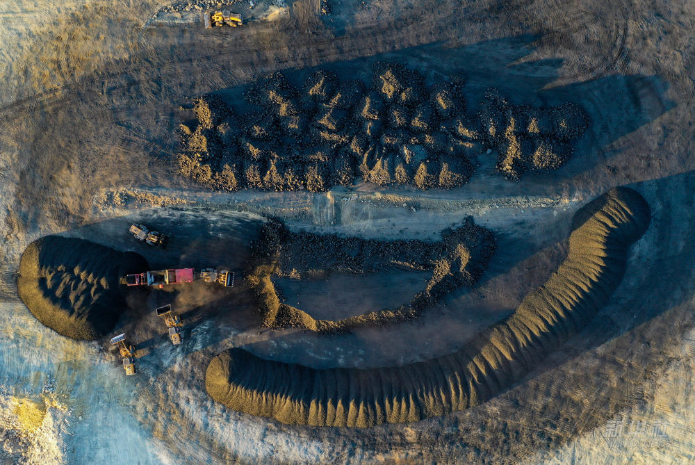 ↑在内蒙古鄂尔多斯市伊金霍洛旗纳林陶亥镇荣恒煤矿,工人们将煤块加工成煤粉(无人机照片,2021年12月15日摄)。每年冬季,作为全国煤炭大区的内蒙古,全力保障煤炭供应,为万千家庭送去温暖。
