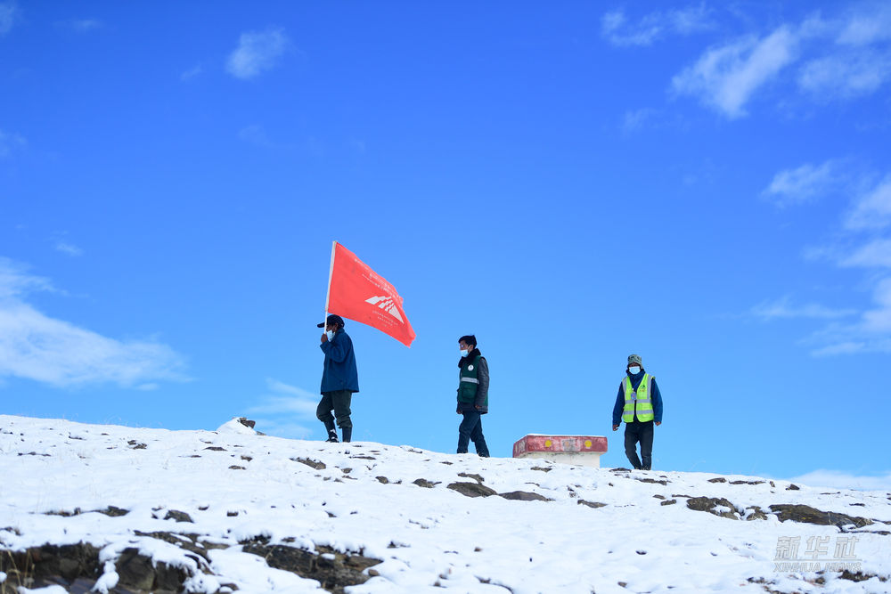 ↑三江源国家公园黄河源园区生态管护员在青海省果洛藏族自治州玛多县扎陵湖乡勒那村巡护(2021年10月20日摄)。