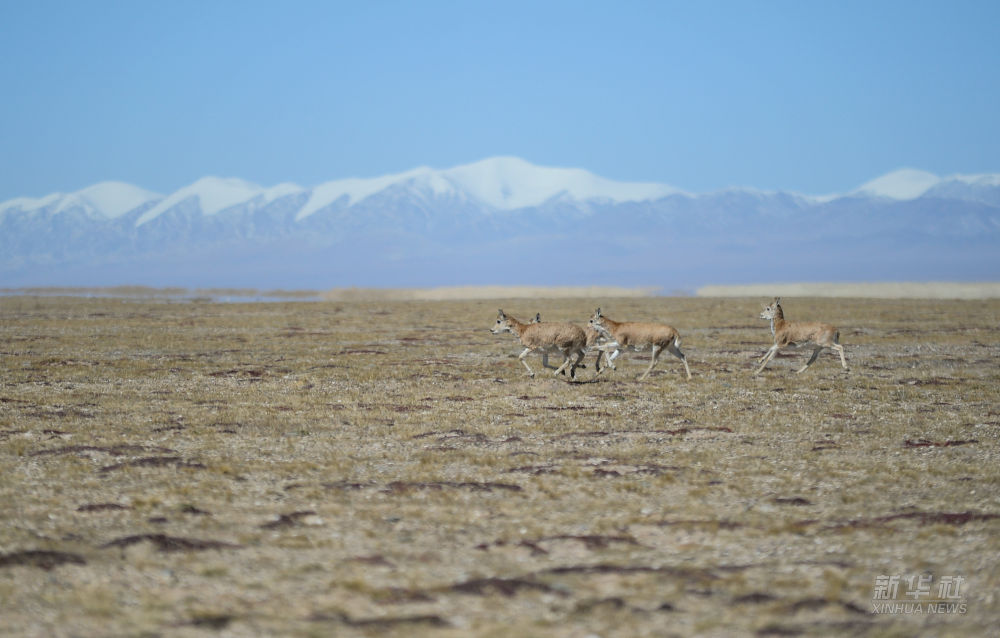↑多年来,世界自然遗产地可可西里不断加大保护力度,保护区内藏羚羊种群数量从不足两万只增长至7万多只,藏羚羊大规模迁徙盛况再现青藏高原。这是几只藏羚羊在可可西里地区奔跑(2021年9月28日摄)。