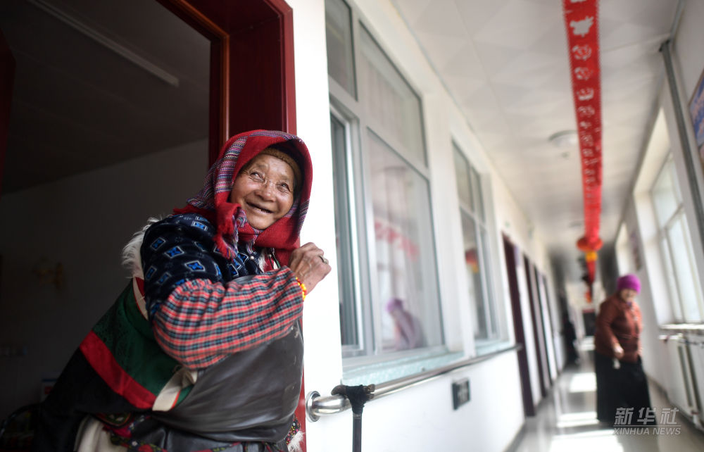 ↑来自立新乡的提沙索忠老人在青海省玉树藏族自治州治多县的幸福敬老院内(2021年3月14日摄)。幸福敬老院海拔超过4000米,是青海省内海拔较高的敬老院之一。
