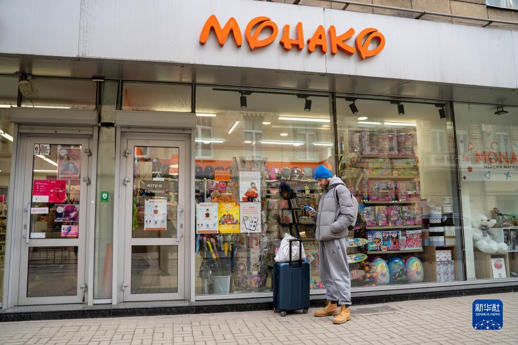 3月6日,一名男子站在乌克兰利沃夫一家商店外。近日,利沃夫大多数商店已停止营业,只有一些销售生活必需品的商店仍在营业。新华社记者 任珂 摄