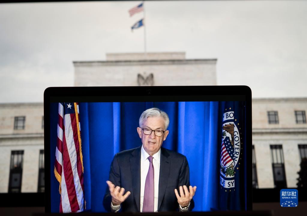 3月16日拍摄的视频画面显示,美联储临时主席鲍威尔在华盛顿出席线上新闻发布会。