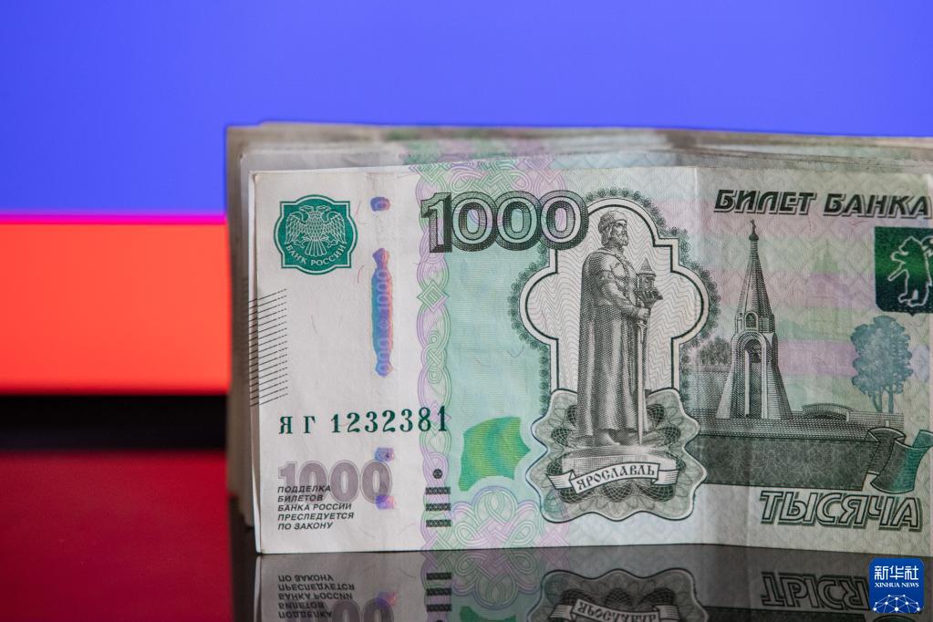 这是3月24日在俄罗斯首都莫斯科拍摄的卢布钞票。
