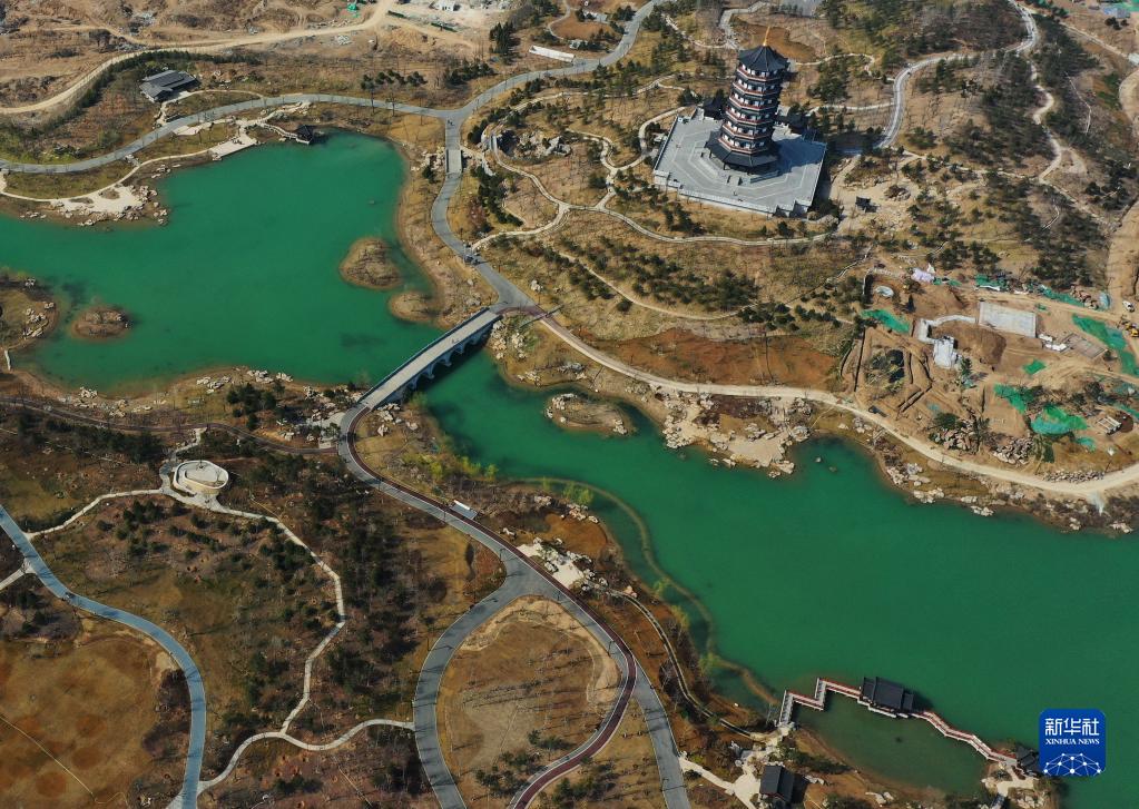这是3月28日拍摄的雄安新区悦容公园的景色(无人机照片)。新华社记者 杨世尧 摄