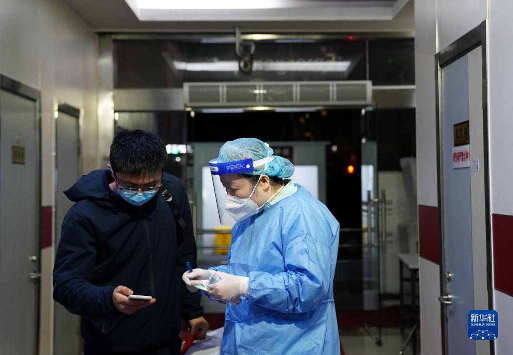 4月1日晚,国际和平妇幼保健院的急诊护士向孕妇家属了解情况。新华社记者 袁全 摄