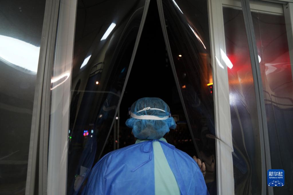 4月1日晚,国际和平妇幼保健院的急诊护士在等待转运孕产妇的救护车。新华社记者 袁全 摄