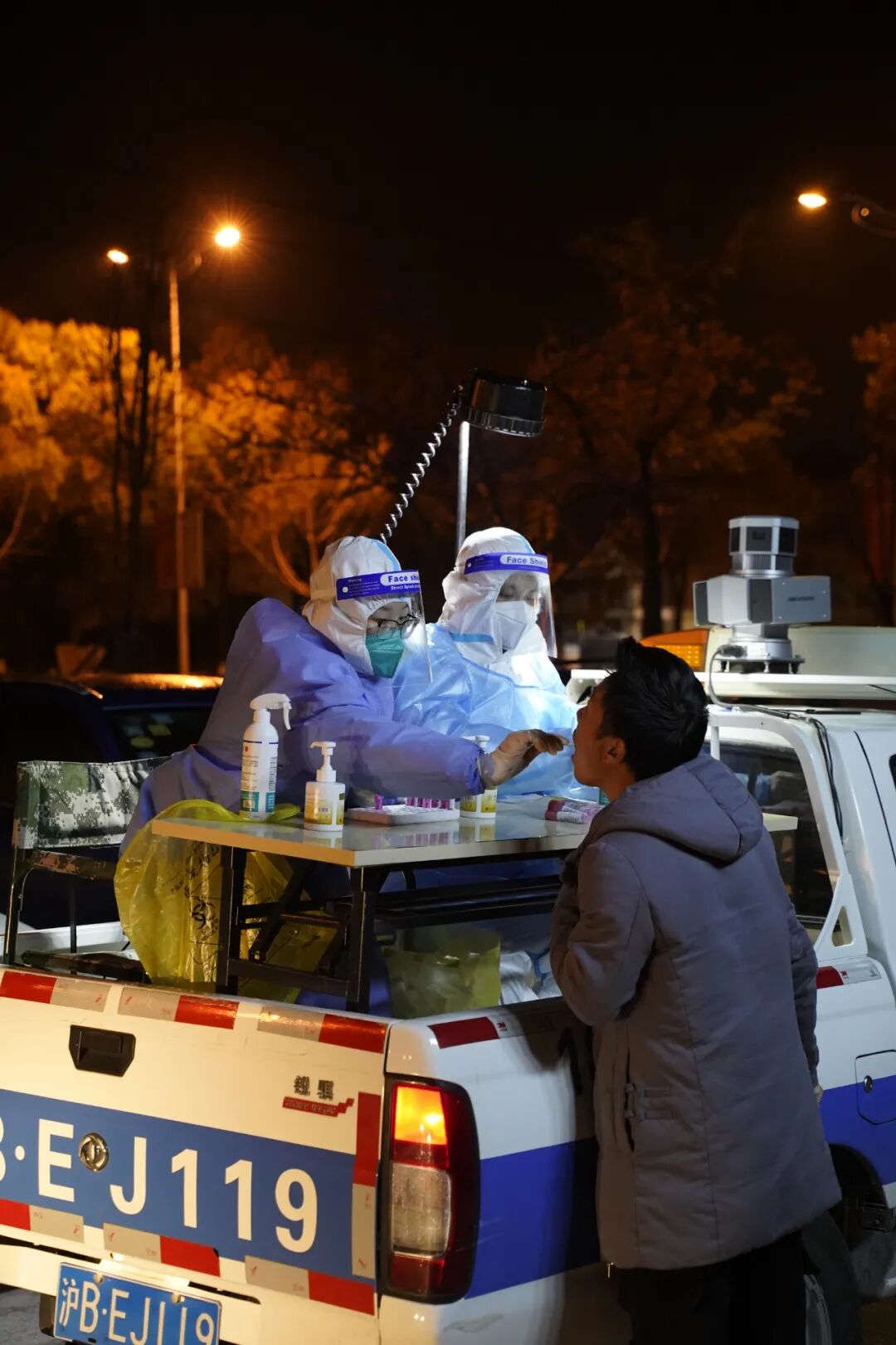 4月4日0点开始,上海市奉贤区西渡街道按照先企业、后社区的顺序,采取移动车辆采集与特定群体上门采集相结合的方式,落实核酸筛查工作。截至上午7点,已完成核酸检测近1.4万人次。新华社发