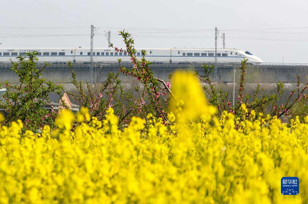 4月7日,列车行驶在江苏省泰州市海陵区境内的宁启铁路线上。