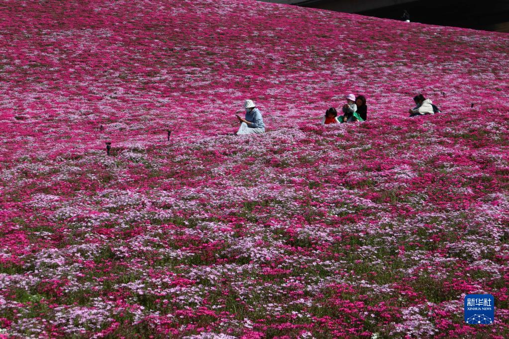 近日,在泉城济南的龙鼎大道南段,一片盛开的花海吸引民众前来游玩、拍照。