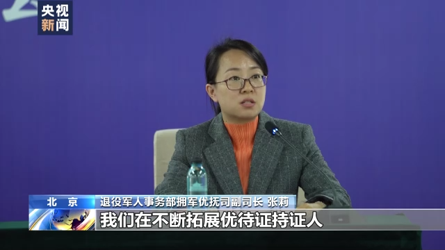 退役军人事务部拥军优抚司副司长 张莉:我们在不断拓展优待证持证人享受优待的范围,目前优待主要覆盖4个方面:一是国家提供的面向全国持证人的优待服务;二是退役军人事务部与相关合作单位签署的《拥军优抚合作协议》所涉及的优待服务;三是各地提供的面向本地持证人优待服务;四是社会各界主动提供的优待服务。