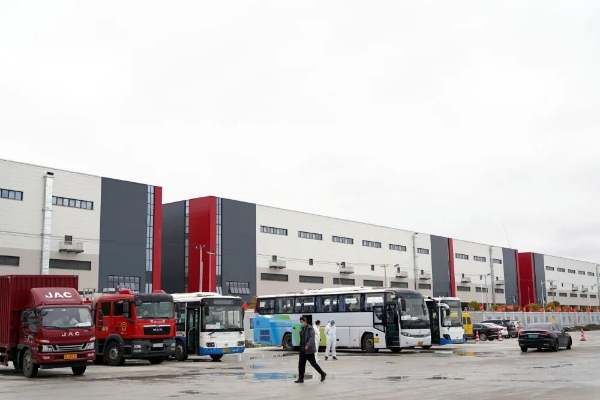 通勤车从方舱医院开往医疗队驻地,车上都是结束一天工作的医护人员。道路两侧,满目苍翠,一派生机勃勃的景象。