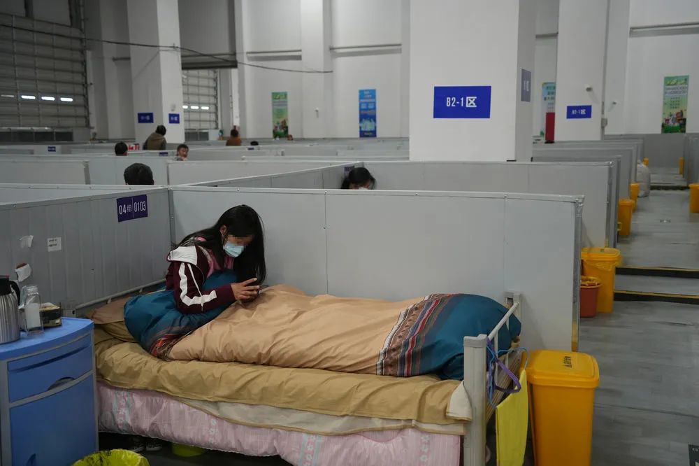 4月16日,患者在上海临港方舱医院里休息。新华每日电讯记者 杨有宗 摄