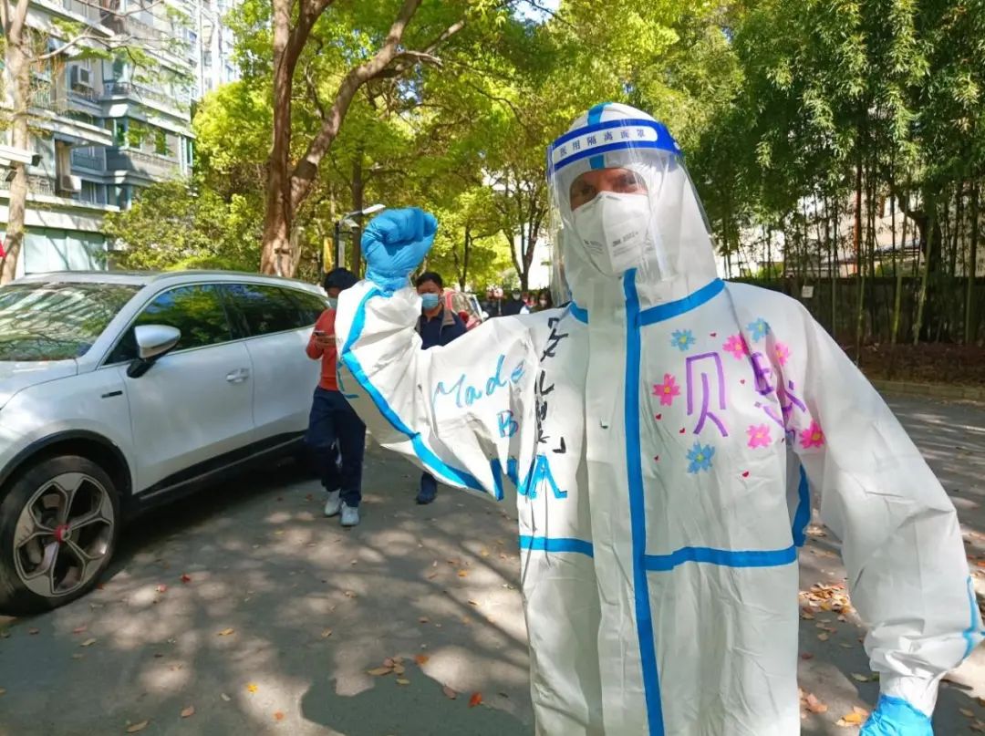 小区居民对看到“外国大白”感到“很新鲜”,主动朝他挥手、打招呼,跟他合影,录视频,事后给他发微信说“谢谢”。得知贝思文来自匈牙利,还有“画家”在他的防护服上画了中国和匈牙利的国旗。贝思文对《环球时报》记者说,原本听说个别居民的“配合度不高”,可他“从未遇到过这种情况”,大家对他“特别友善”。