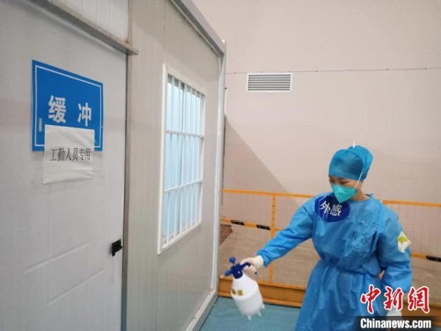 图为外感护士进行消杀工作。 江苏省中医院供图