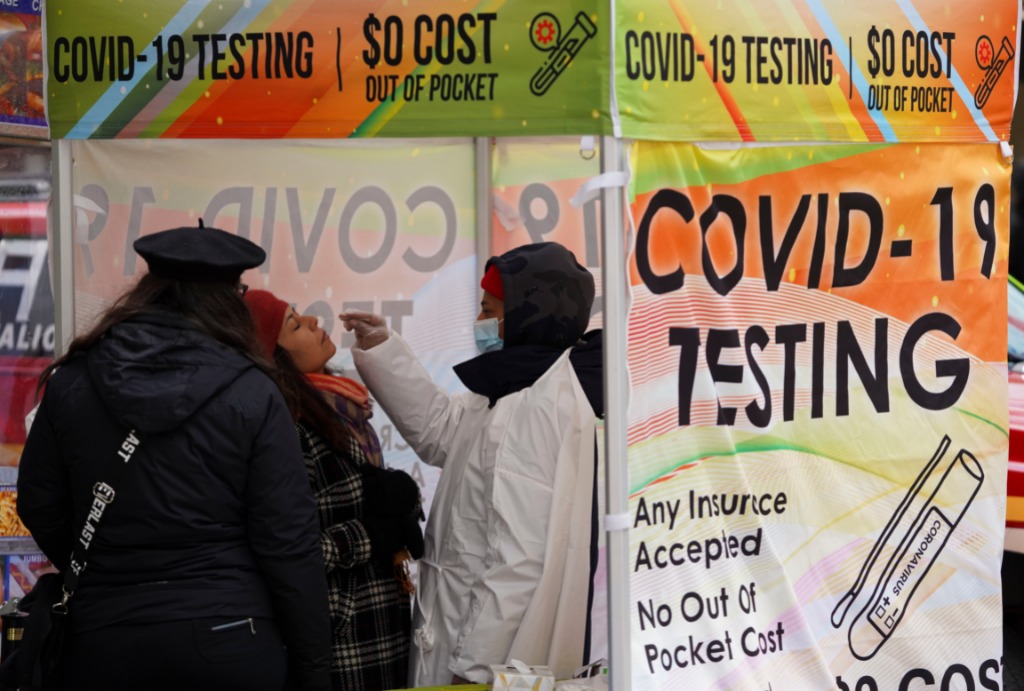 3月29日,医护人员在美国纽约一个新冠病毒检测点取样。新华社记者王迎摄