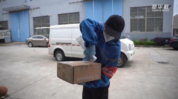 在奉贤东部中通网点,随着自动分拣线的启动,身着防护服的操作工对卸车快件逐一消杀,快递小哥也开始准备分拣和装车派送。根据要求,目前快递派件均采取无接触配送的形式。