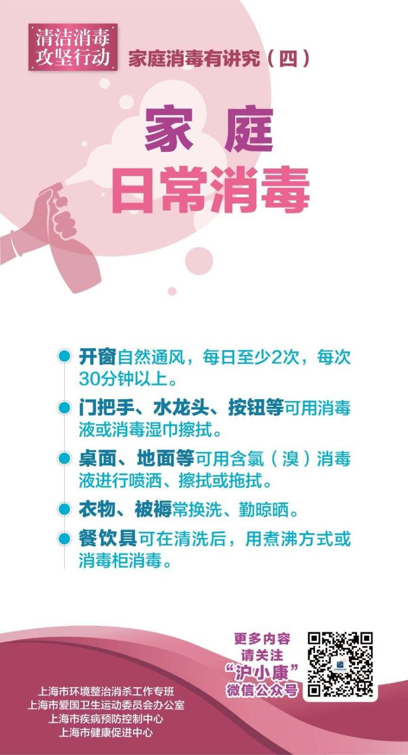 清洁消毒行动是社会面清零攻坚十大行动之一。5月2日的上海市新冠疫情防控新闻发布会上介绍,针对大家关注的室内空气消毒、快递物品消杀、消毒剂如何使用等,已专门制作科普宣传材料向全市推广,帮助广大市民科学规范做好家庭环境消杀。