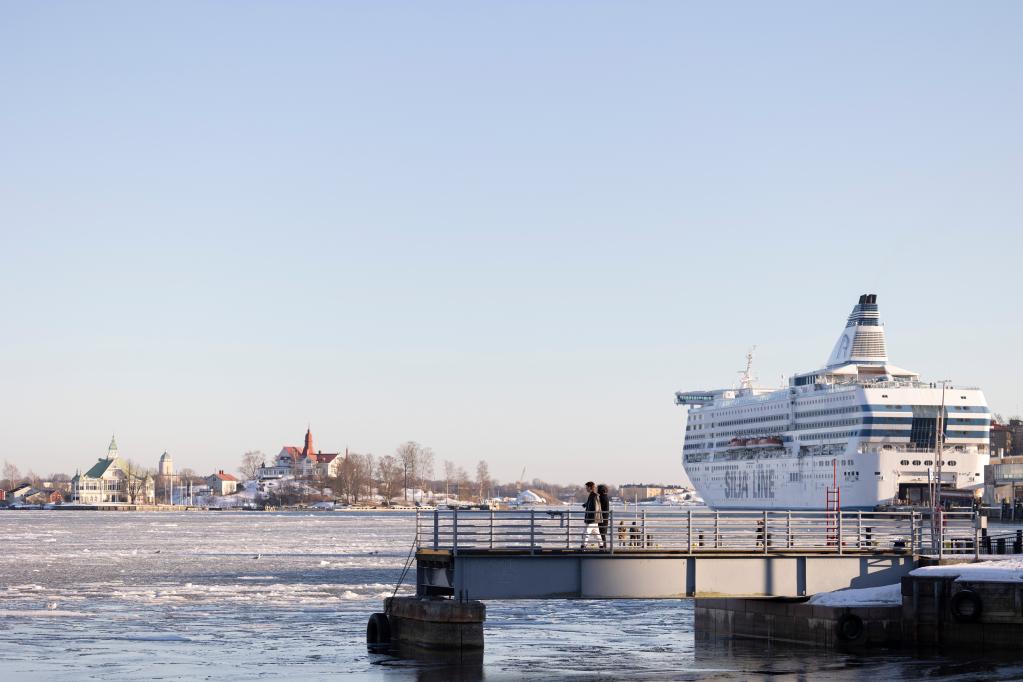 这是3月16日拍摄的芬兰赫尔辛基集市广场前的海景。新华社发(马蒂·马蒂凯宁摄)