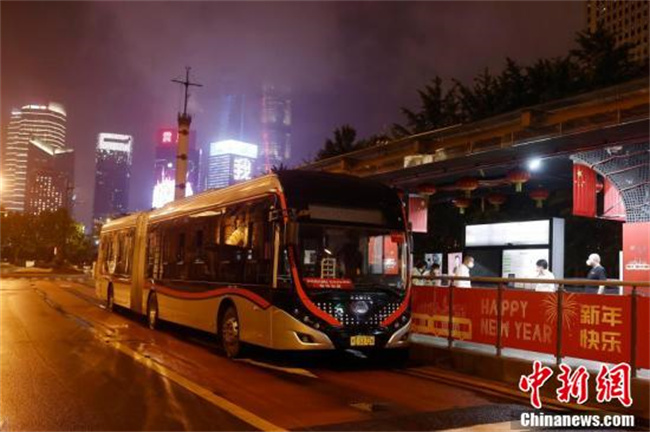 71路中运量公交车的部分司机正在对外滩站进行站台清洁,同时对车辆进行试跑。(殷立勤 摄)